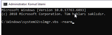 Böylece Windows etkinleştirme süresi sıfırlanacaktır.