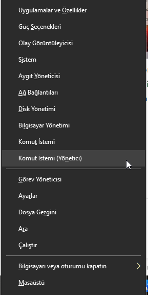 Açılan Komut İstemi penceresine aşağıdaki komutu yazın: